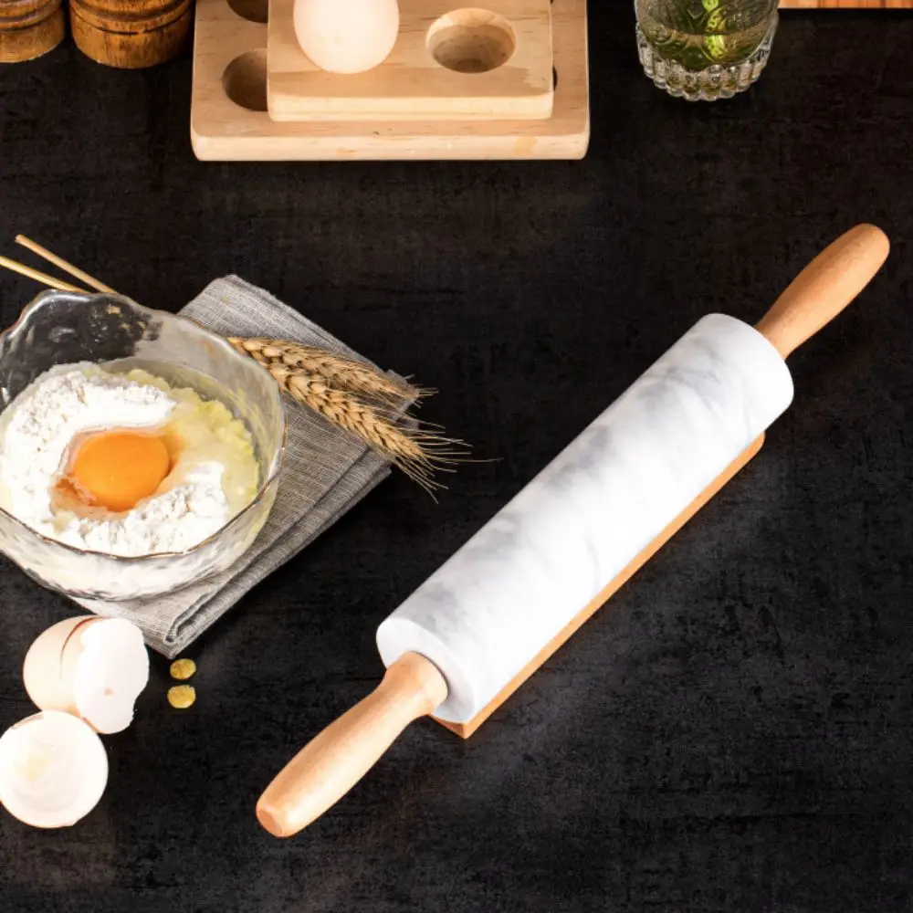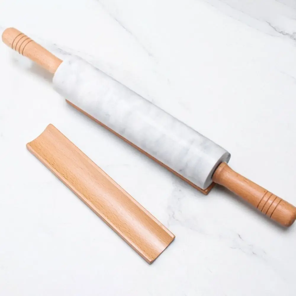 This marble rolling pin provides a smooth and steady surface for rolling dough with ease. Its natural marble construction stays cool, helping prevent dough from sticking. The ergonomic wooden handle offers a comfortable and secure grip. A matching storage base keeps the pin clean and protected when not in use. Ideal for pie crusts, cookies, pasta, and bread dough. The nonstick texture allows dough to glide effortlessly for consistent thickness. Its weight helps roll out dough evenly with less effort. Stylish and durable, it adds a touch of elegance to any kitchen. Easy to wipe clean after baking tasks. This marble rolling pin is perfect for home bakers and pastry lovers seeking precision and convenience.