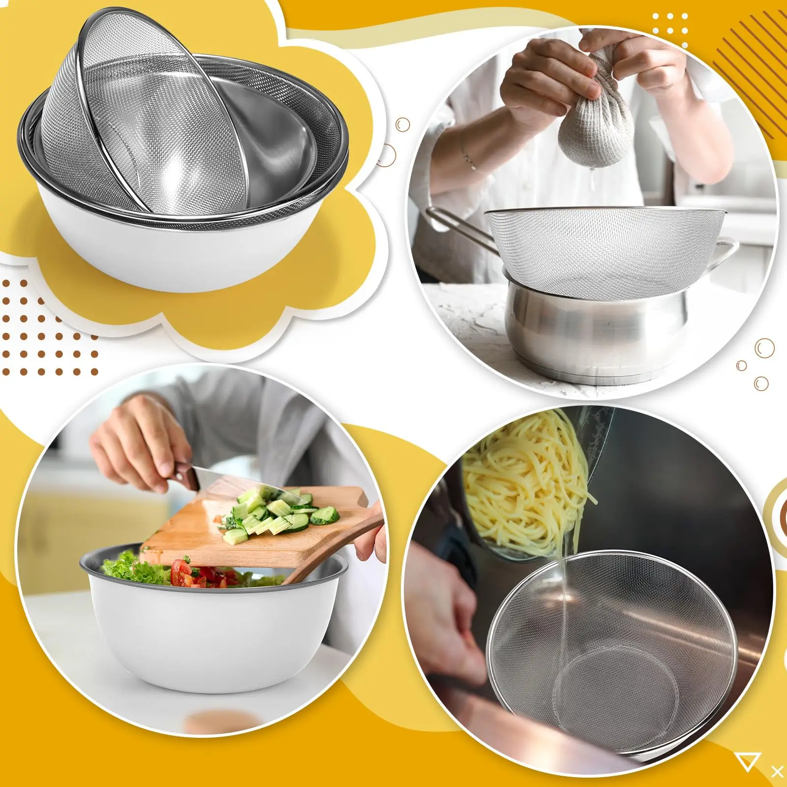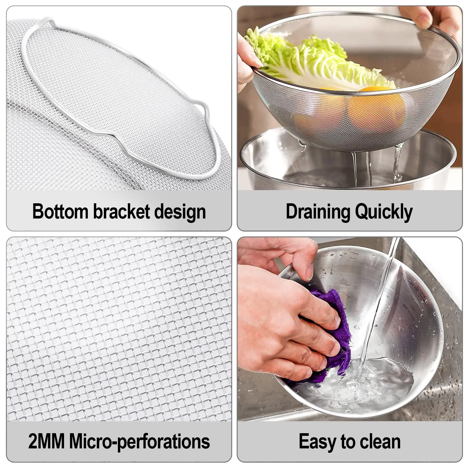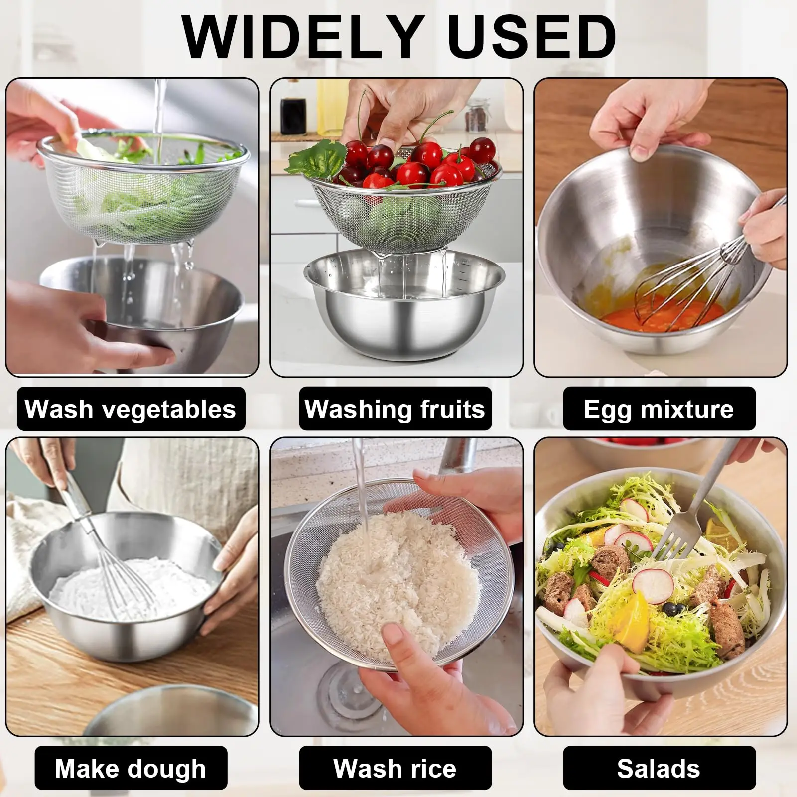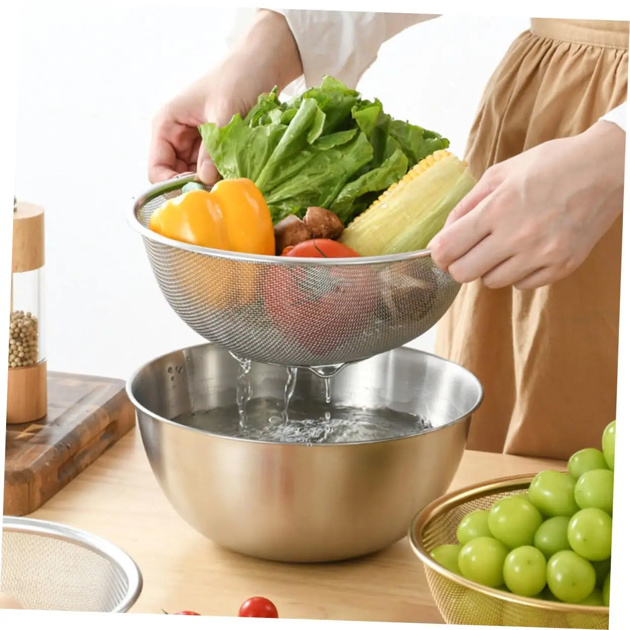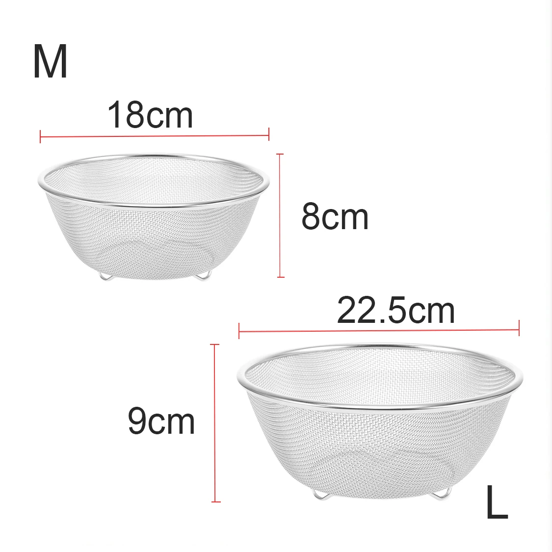 This stainless steel colander offers quick and efficient rinsing for fruits, vegetables, rice, and pasta. The fine mesh design helps drain water thoroughly while keeping small ingredients contained. Made from durable stainless steel, it resists rust, stains, and wear for long-lasting use. Its perforated structure provides excellent airflow and rapid drying. Lightweight yet sturdy, it is easy to lift and maneuver in the sink. The open basket shape gives ample space for washing large batches of produce. Smooth edges ensure comfortable handling and safe use. Cleaning is simple—just rinse or place in the dishwasher. Perfect for everyday meal prep, from washing greens to straining noodles. This colander is an essential kitchen tool for clean, fresh ingredients every time.